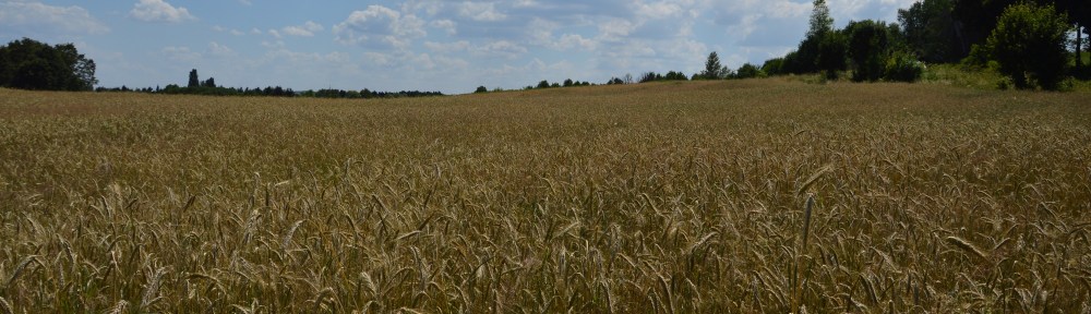 The surrounding area is covered in wheat fields and windmills..