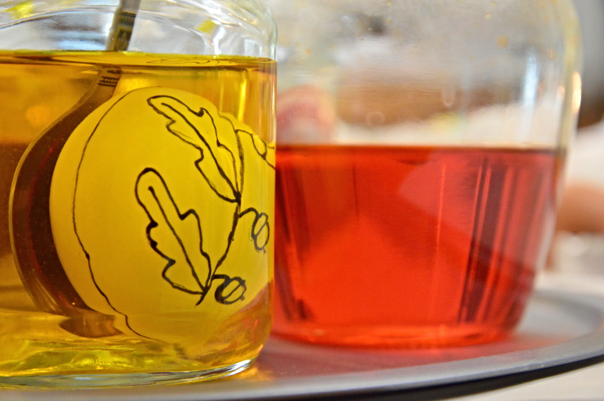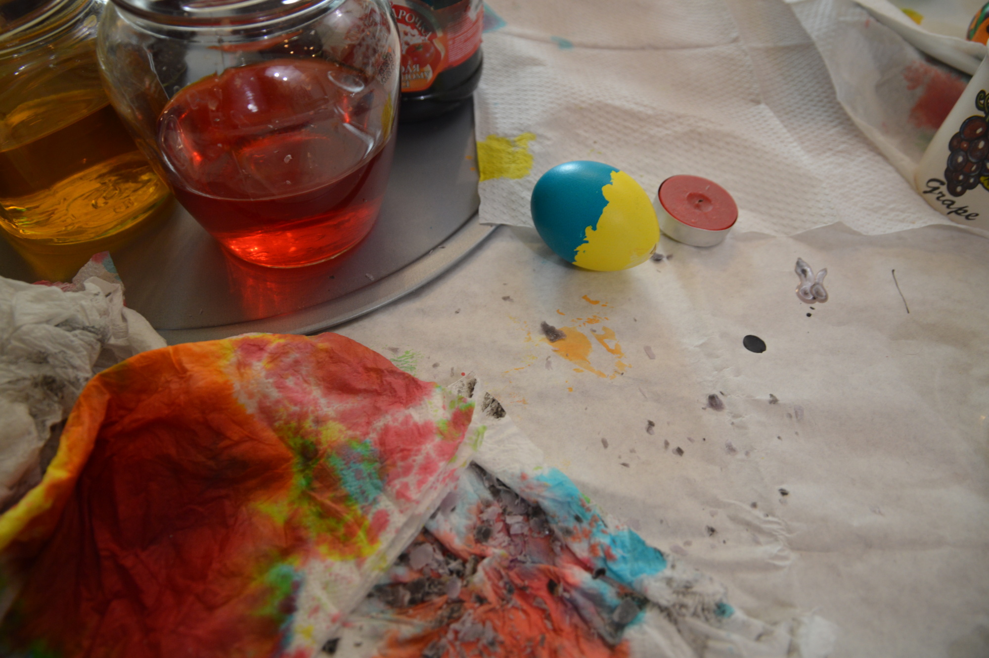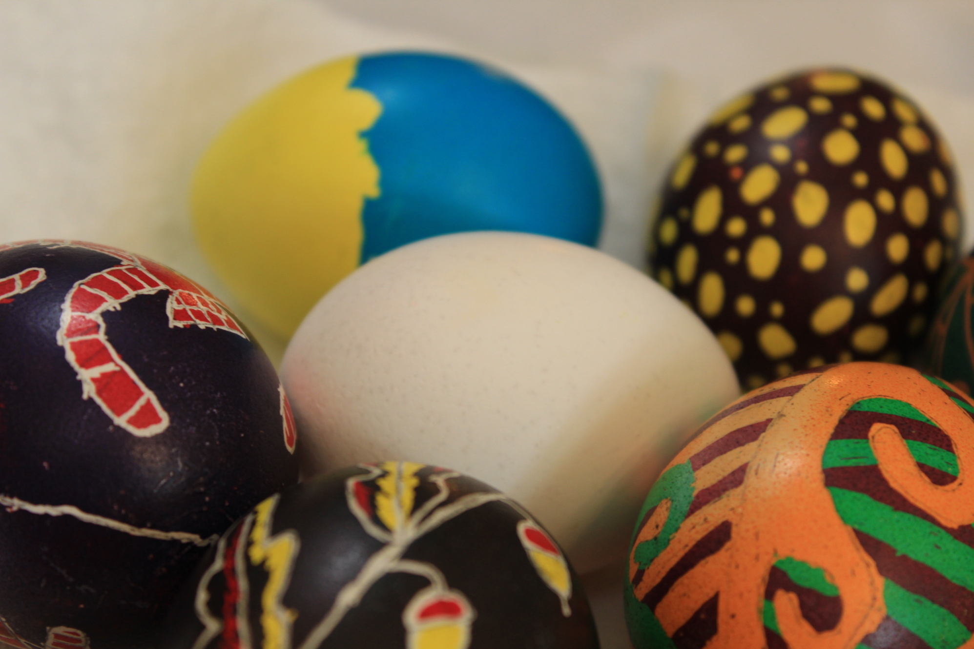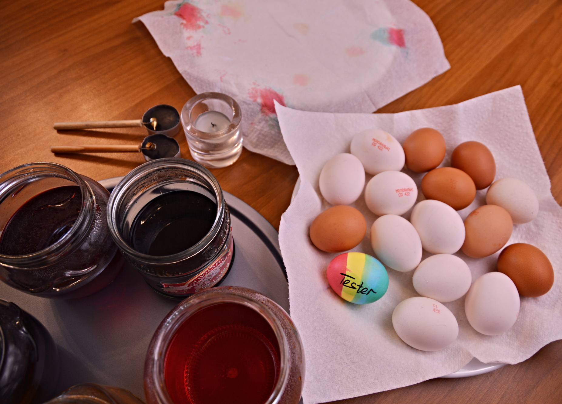 Areas of your egg that you want to remain that color are then waxed over before being soaked in a different color dye