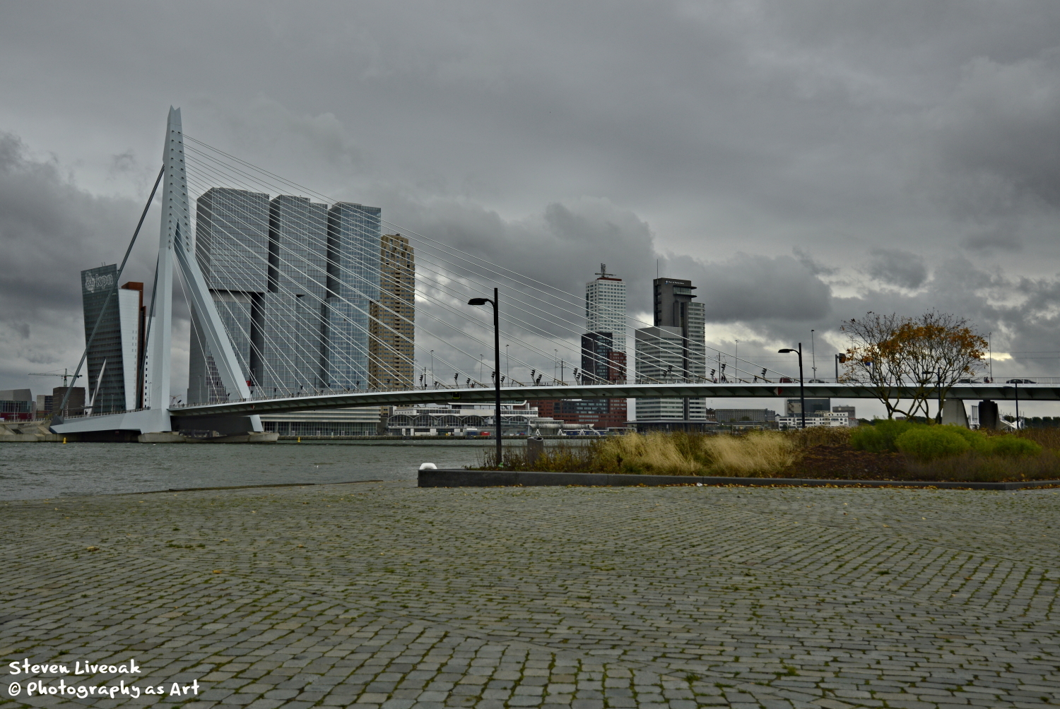 Geometry KPN Towers and Bridge Erasmusbrug Bridge 1 Willemsbrug Bridge Canal Apartments Rotterdam de Maas
